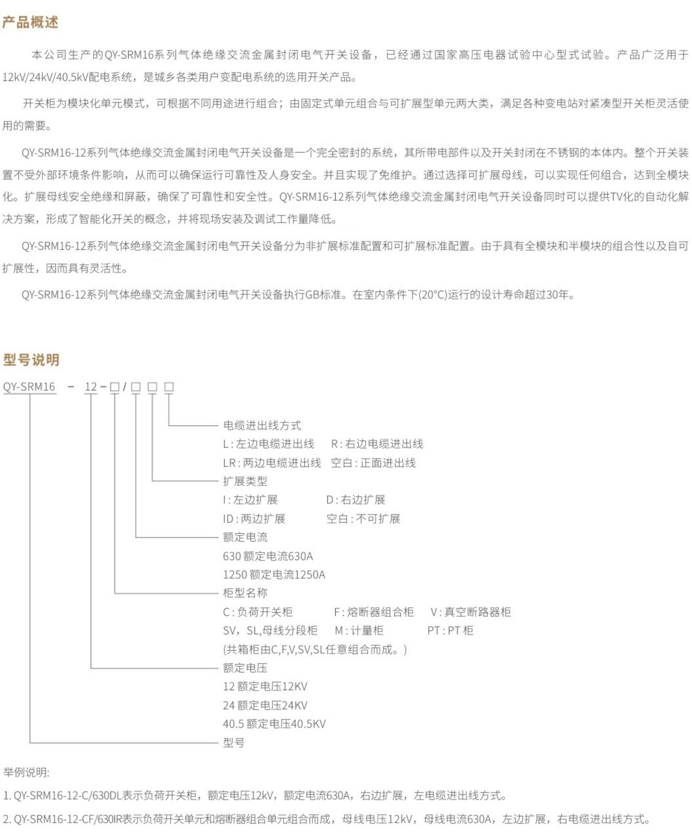 QY-SRM16系列气体绝缘交流金属封闭电气开关设备