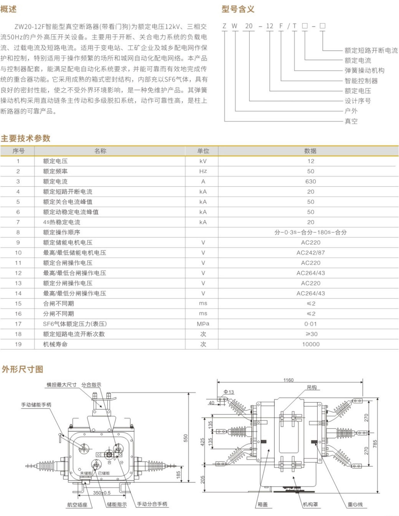 ZW20-12F智能型真空断路器(看门狗)
