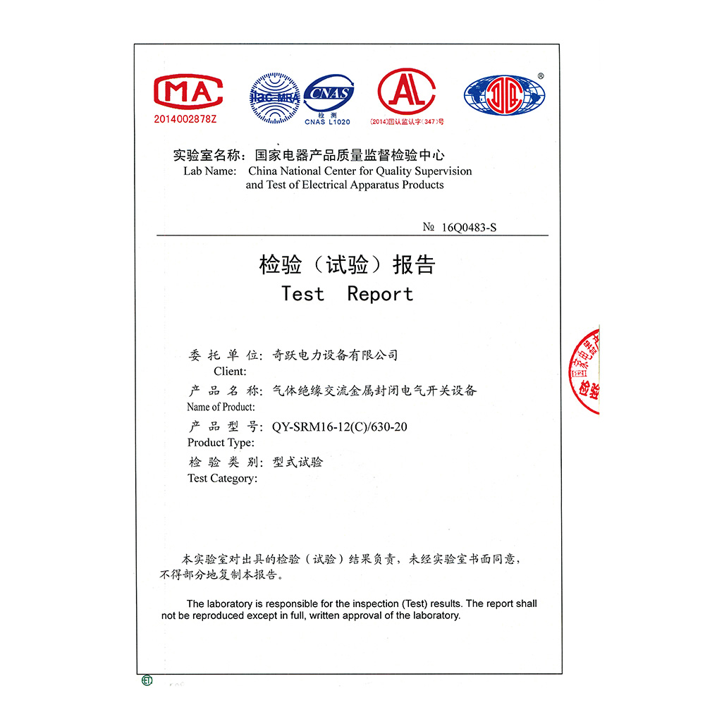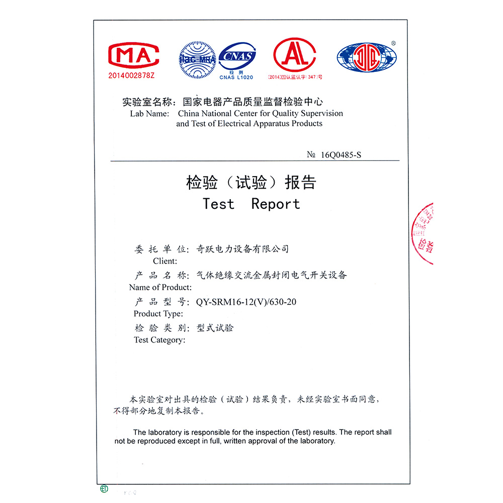 QY-SRM16-12(V)/1250-31.5气体绝缘交易金属封闭电气开关设备 检验报告