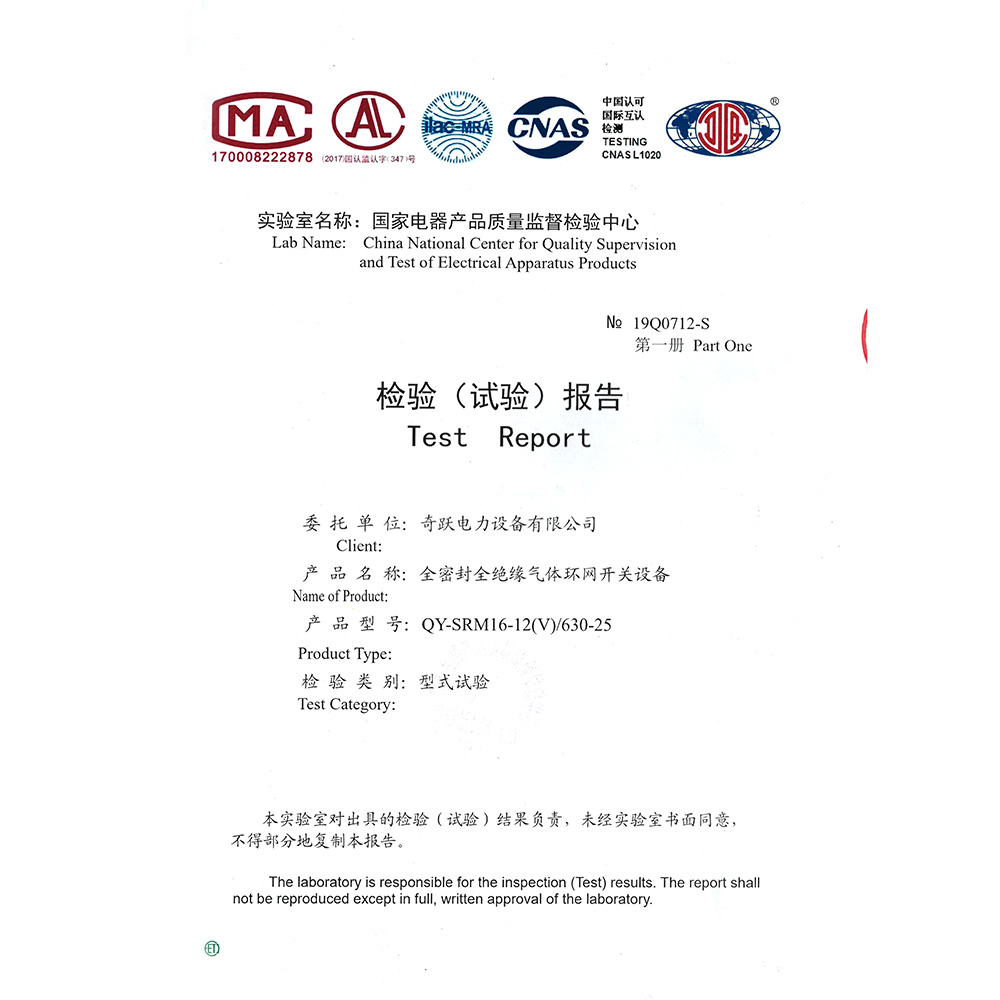 QY-SRM16-12(C)/630-20气体绝缘交流金属封闭电气开关设备 检验报告