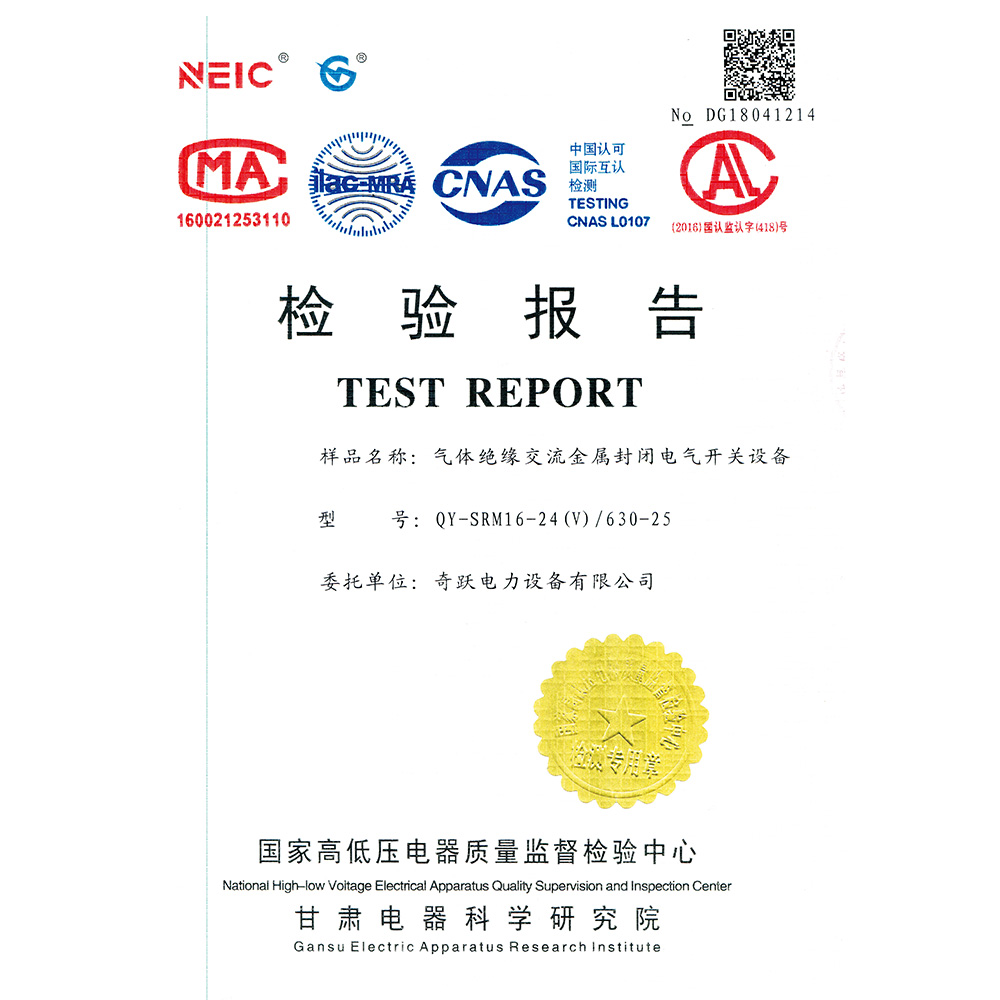 QY-SRM16-24(C)/630-25气体绝缘交流金属封闭电气开关设备 检验报告