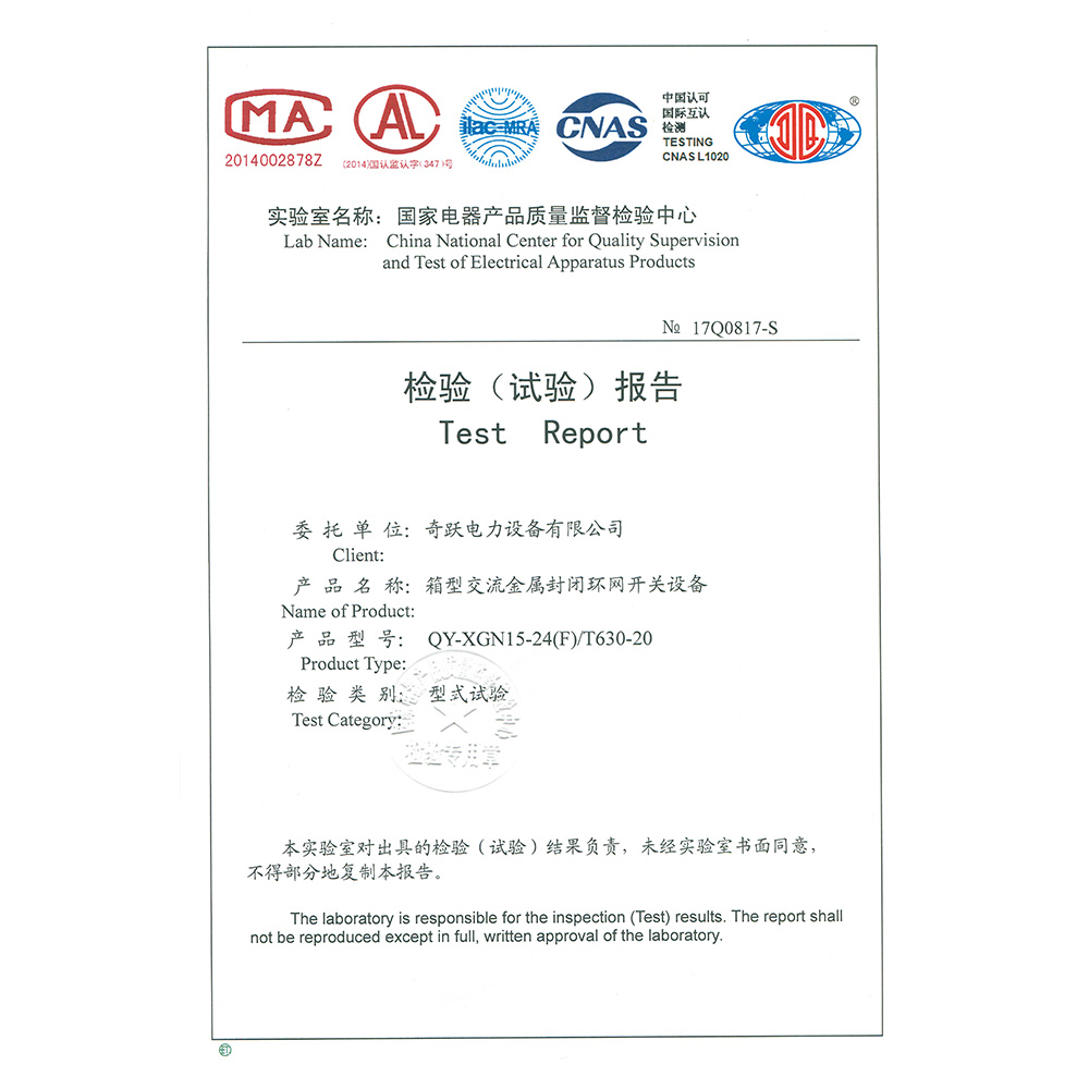 QY-XGN15-24(F)/T630-20箱型交流金属封闭环网开关设备 检验报告