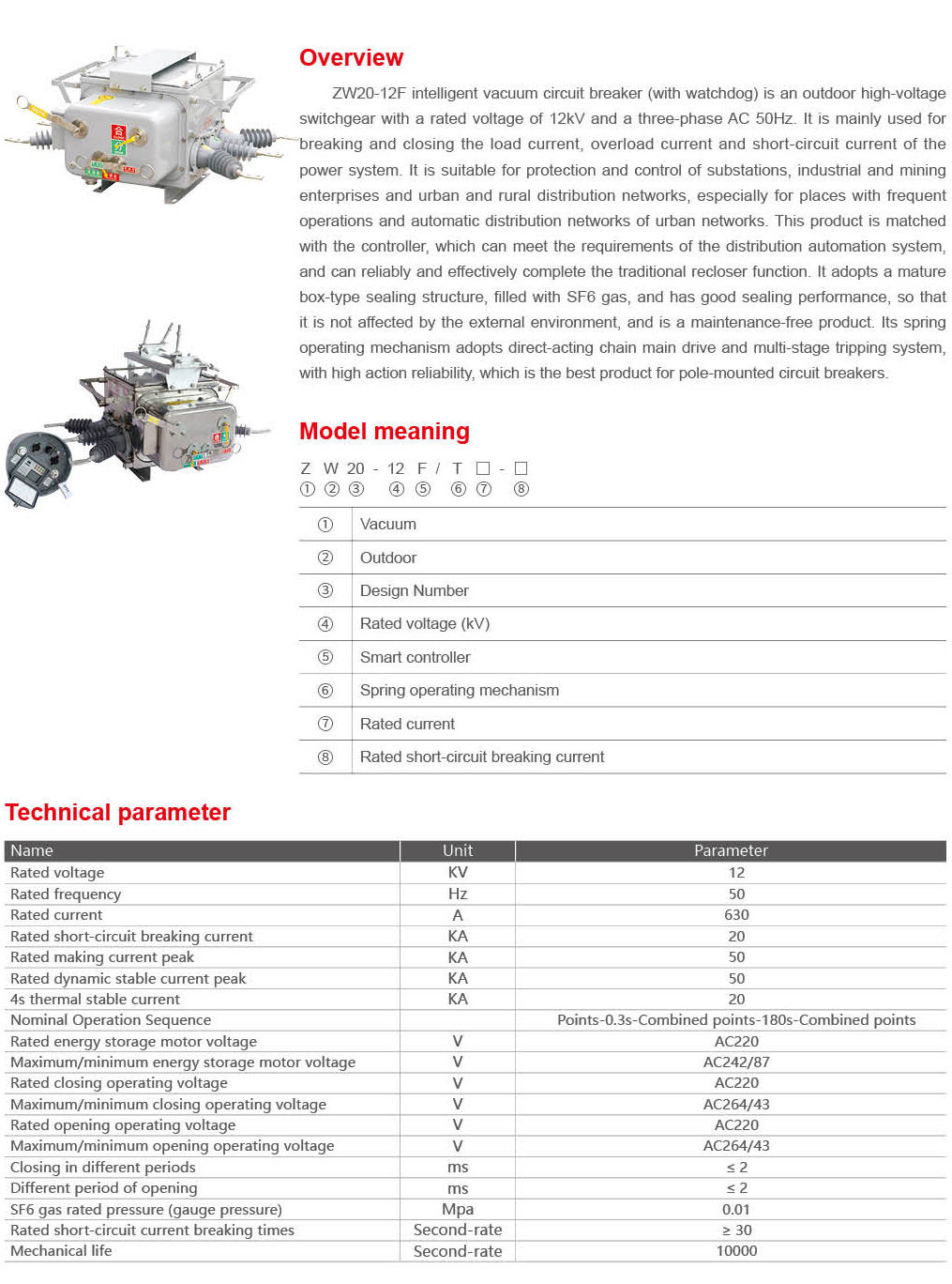 ZW20-12F Intelligent vacuum circuit breaker(watchdog)